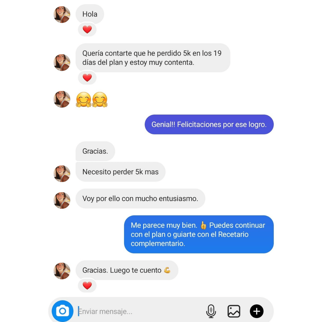 Nuestro plan no incluye seguimiento. Pero, puedes resolver todas tus dudas y compartir resultados en el grupo privado de Facebook. Nuestra comunidad siempre está para ti y esto te cargará siempre de Motivación!